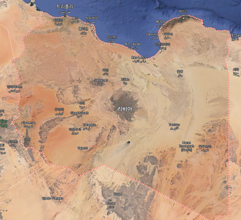 리비아는 아프리카 국가 중에서 4번째로 큰 국가이지만 국토 대부분이 사하라 사막에 속해 있고 인구 대부분은 해안가에 집중되어 있습니다.
