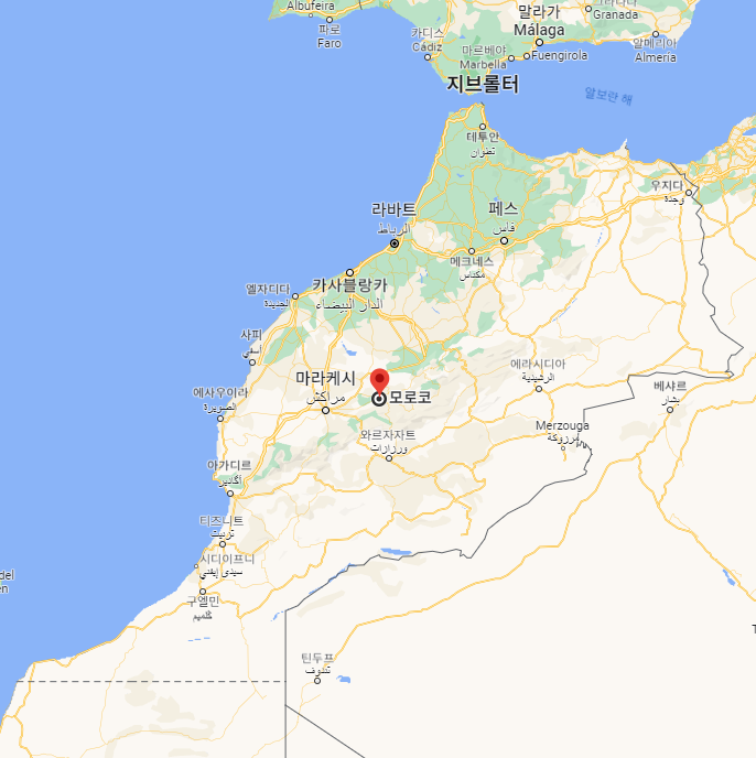 모로코는 국토 전체 면적의 1/3 이상이 산으로 이루어져 있는 산악국으로 지진활동이 심한 지대가 많은 것이 특징입니다.