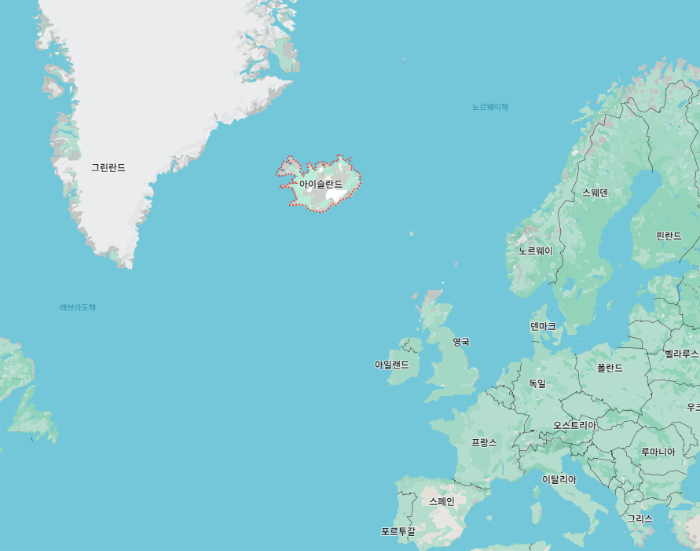 아이슬란드"Iceland"는 북유럽의 섬나라로 그린란드의 남동쪽으로 영국/아일랜드/노르웨이 사이에 위치하고 있습니다.