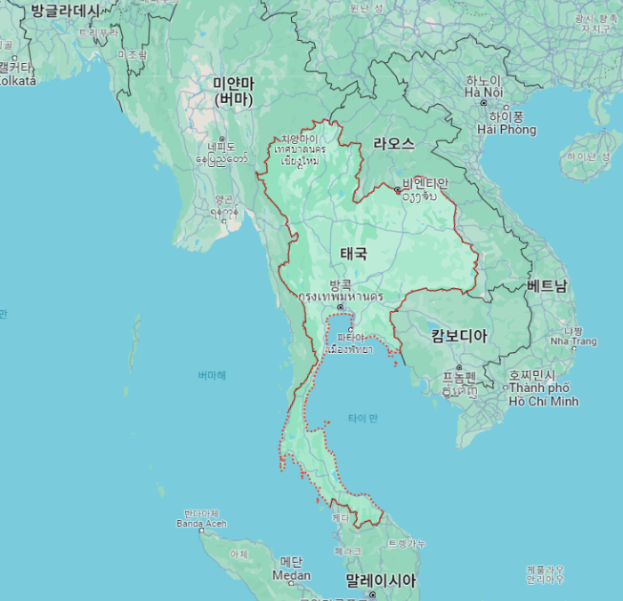 태국(타이)"Thailand"은 동남아시아에 위치한 국가로 동쪽으로는 "캄보디아"와 라오스" 북쪽으로는 "미얀마"와 "라오스", 남쪽으로는 "말레이시아"와 국경을 접하고 있습니다.