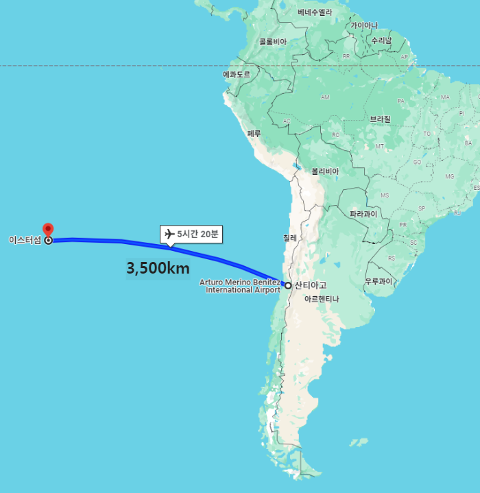 이스터섬"Easter Island"은 칠레 본토에서 서쪽 태평양으로 약 3,500km에 위치하고 있는 화산섬으로 면적은 약 163.6 ㎢(울릉도의 약 2배)입니다.