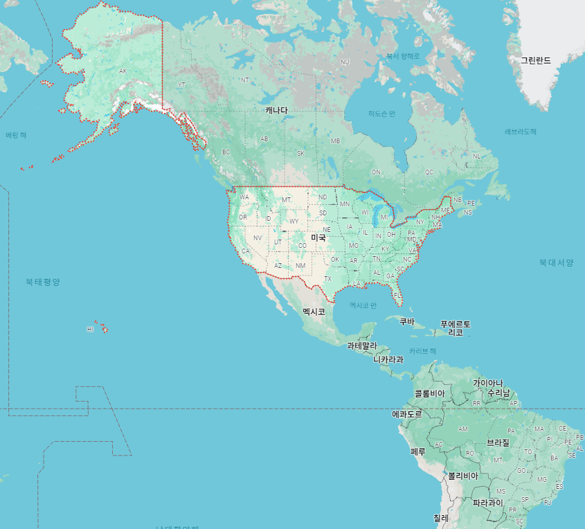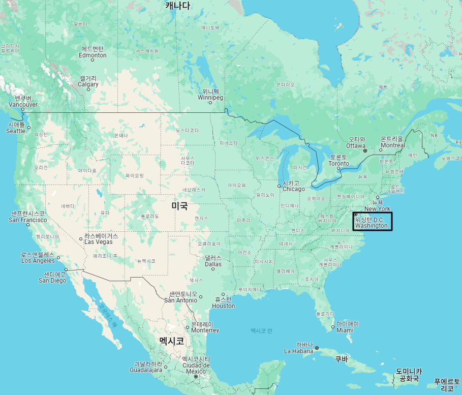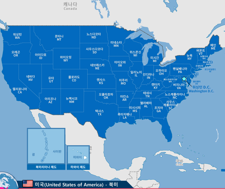 미국"United States of America"은 북아메리카에 위치하고 있는 연방제 공화국으로 수도는 워싱턴"Washington" D.C.입니다.