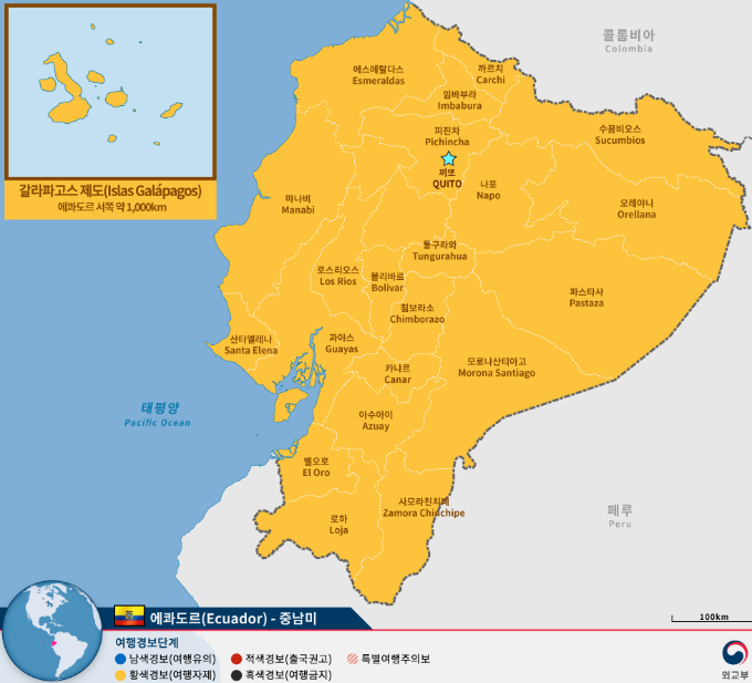 에콰도르 갈라파고스 제도 세계 지도 위치 본문