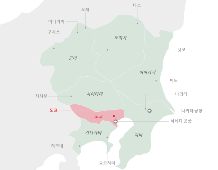 일본 수도 도쿄 지도 위치와 비행시간 본문