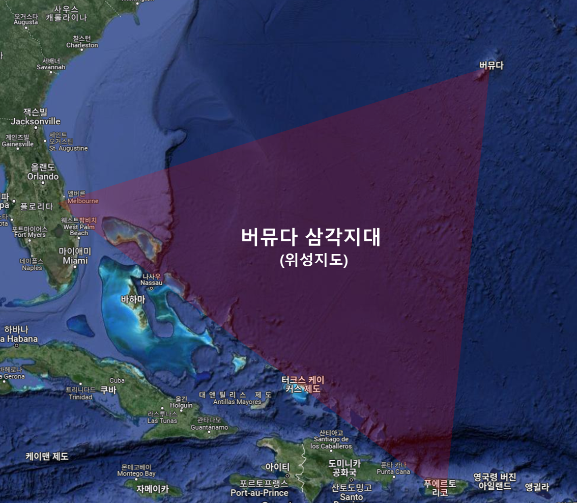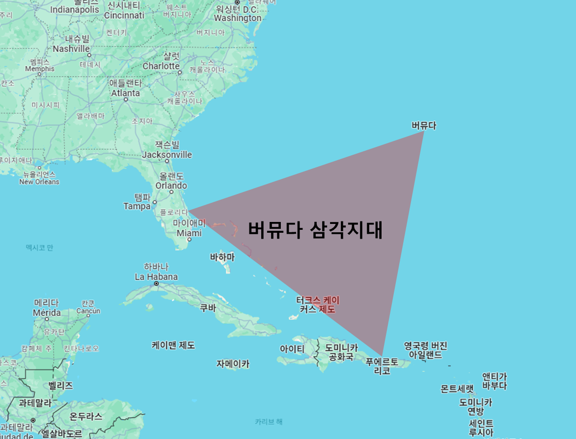 버뮤다 삼각지대는 버뮤다와 미국 플로리다 해협, 그리고 푸에르토리코를 잇는 삼각형 범위의 해역을 말합니다.