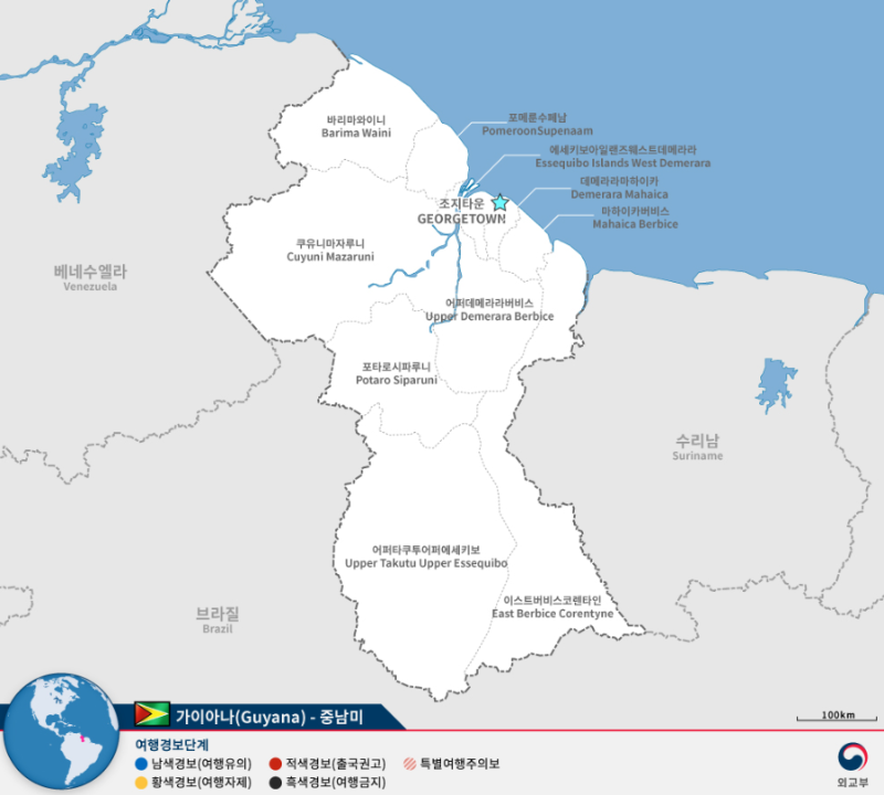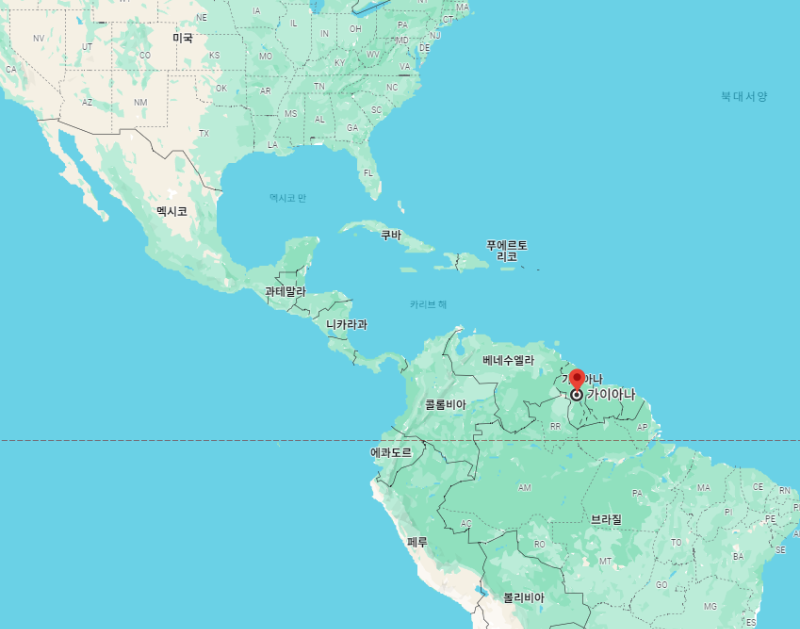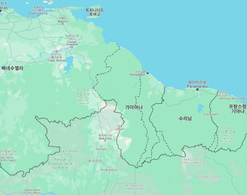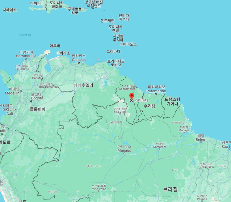 가이아나"Guyana"는 남아메리카 대륙 북부에 위치하고 있는 국가로 동쪽으로는 수리남, 남쪽에는 브라질, 서쪽에는 베네수엘라와 국경을 접하고 있습니다.