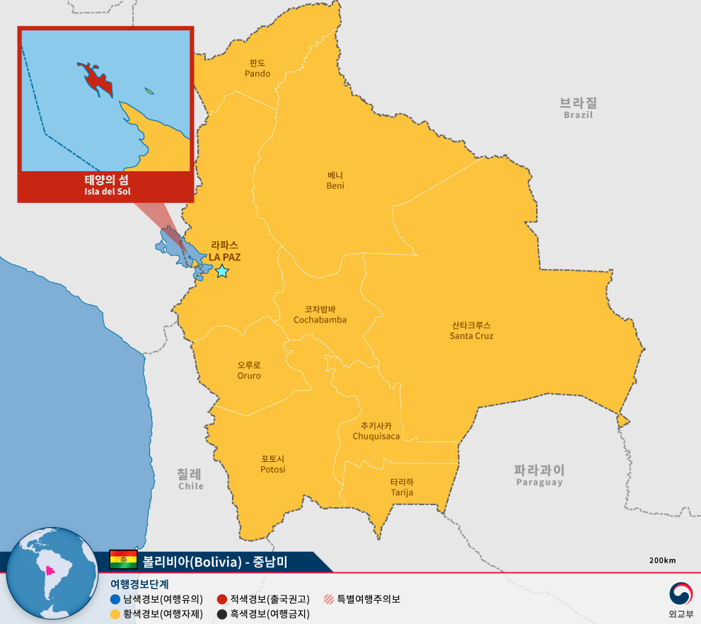 대한민국과 볼리비아는 1965년 4월 25일 수교했으며 현지 교민은 약 557명입니다.