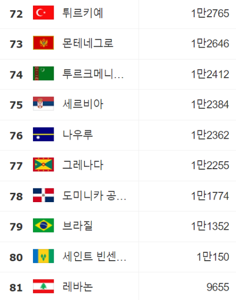 1인당 GDP 순위 72∽81위: