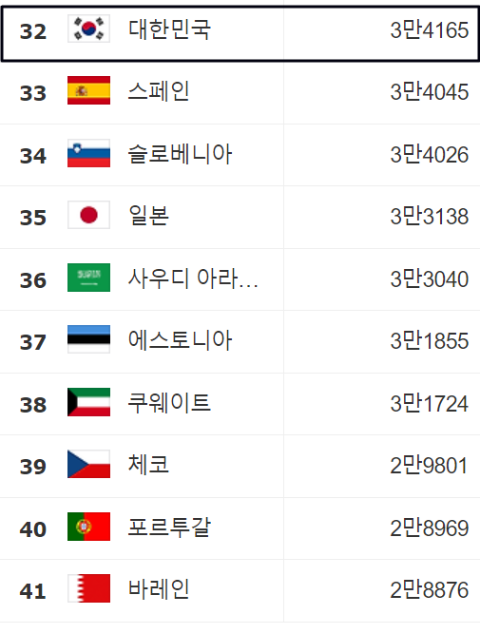 1인당 GDP 순위 32∽41위: