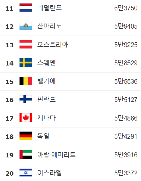 1인당 GDP 순위 11∽20위: