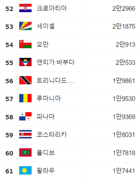 1인당 GDP 순위 52∽61위: