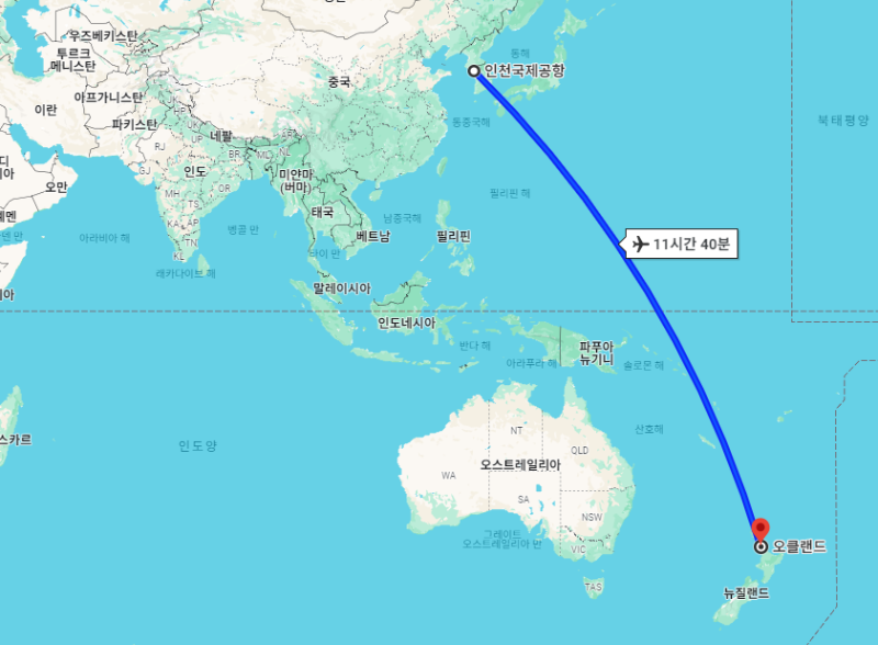 대한민국 기준으로 뉴질랜드까지의 거리는 9,794km이며, 비행시간은 오클랜드공항(AKL) 직항 도착 기준 11시간 40분 내외, 시차는 뉴질랜드가 3시간 빠릅니다.