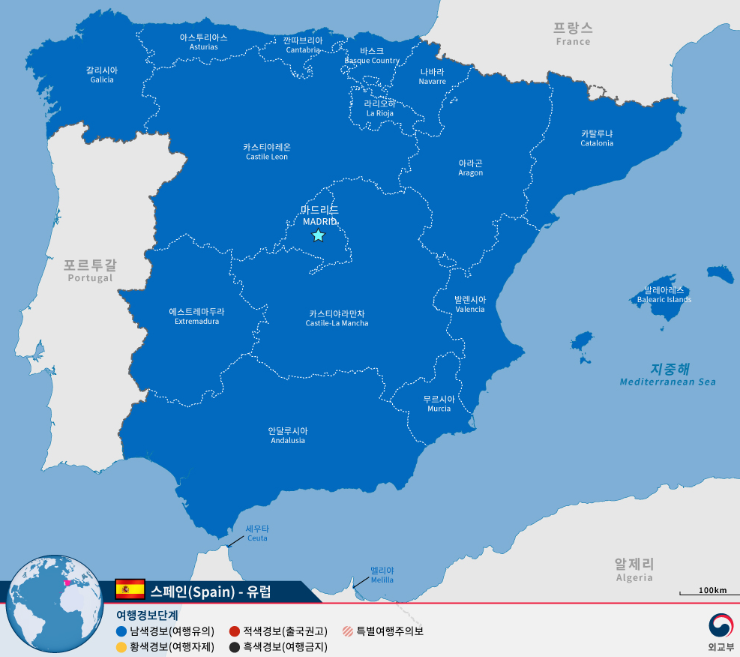 스페인"Spain"은 유럽 대륙의 서남부, 이베리아반도에 위치하고 있는 입헌군주국으로 공식 명칭은 스페인왕국"Kingdom of Spain"입니다.