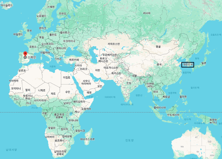 대한민국 기준으로 스페인까지의 거리는 약 10,011km이며, 비행시간은 바르셀로나공항(BCN) 직항 도착기준 14시간 10분 내외, 시차는 스페인이 7시간 느립니다.