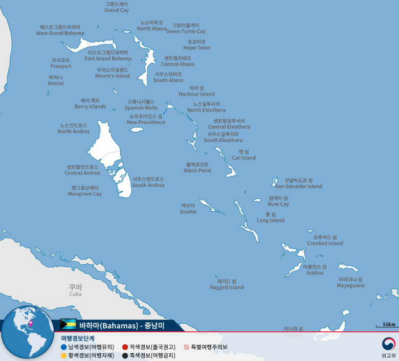 바하마"Bahamas"는 중앙아메리카 북동쪽, 카리브해에 위치하고 있는 영국 연방의 섬나라로 공식 국명은 "바하마연방"입니다.