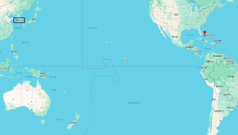대한민국 기준으로 바하마까지의 거리는 12,733km이며, 시차는 바하마가 13시간 느립니다.