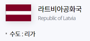 라트비아"Latvia"는 유럽 대륙의 북동부 발트해 연안에 위치하고 있는 국가로 공식 국명은 라트비아공화국"Republic of Latvia"입니다.