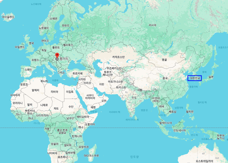 대한민국 기준으로 헝가리까지의 거리는 약 8,164km이며, 비행시간은 부다페스트공항(BUD) 직항 도착 기준 최소 12시간 30분, 시차는 헝가리가 7시간 느립니다.