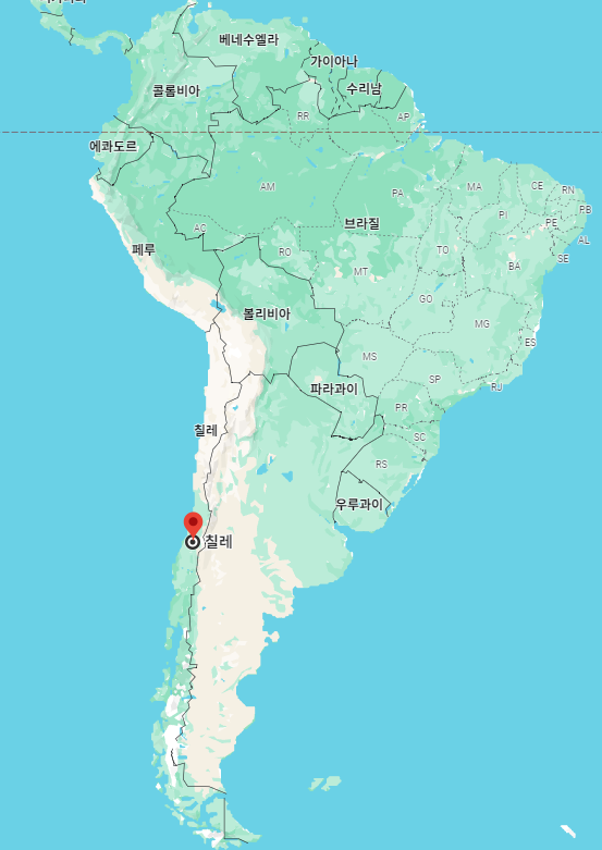 칠레"Chile"는 남아메리카의 남서부, 남태평양에 남북으로 매우 길게 접해있는 국가로 공식 국명은 칠레공화국"Republic of Chile",