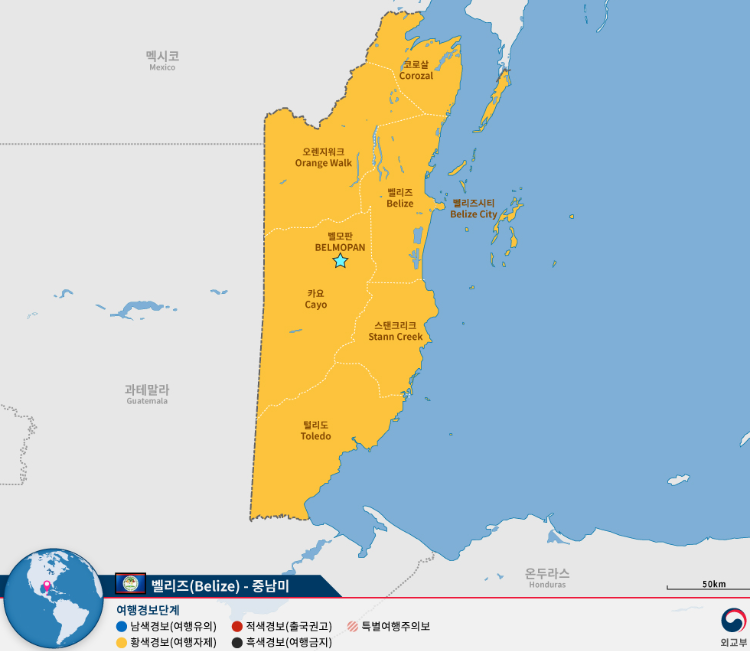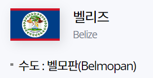 벨리즈"Belize"는 중앙아메리카 유카탄 반도의 남동부 연안에 위치하고 있는 입헌군주제 국가입니다.
