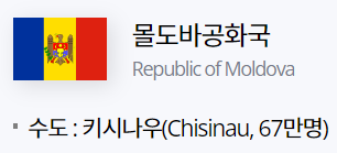 몰도바"Moldova"는 유럽 대륙의 동부에 위치하고 있는 내륙국으로 공식 국명은 몰도바공화국"Republic of Moldova"입니다.