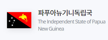 "파푸아뉴기니"는 오세아니아 대륙의 북쪽, 뉴기니섬 동반부에 위치하고 있는 섬나라로 공식 국명은 파푸아뉴기니독립국"The Independent State of Papua New Guinea"입니다.