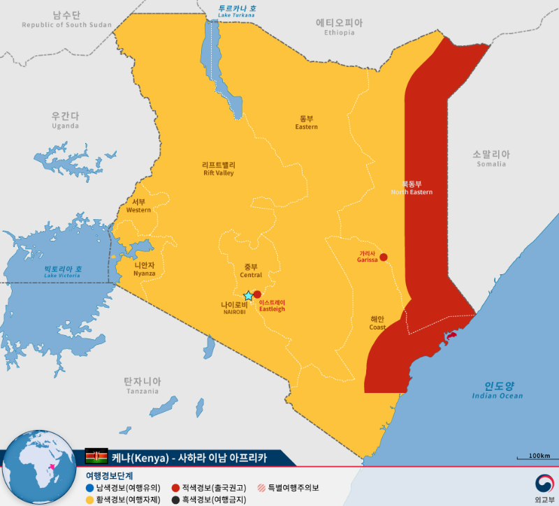 케냐"Kenya"는 아프리카 대륙의 동부, 인도양 연안에 위치하고 있는 국가로 공식 국명은 케냐공화국"Republic of Kenya"입니다.