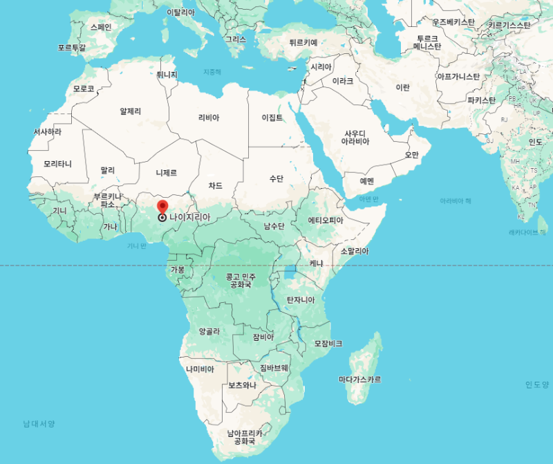 나이지리아"Nigeria"는 아프리카 대륙의 서부, 대서양연안에 위치하고 있는 국가로 공식 국명은 나이지리아공화국"Rederal Republic of Nigeria"입니다.