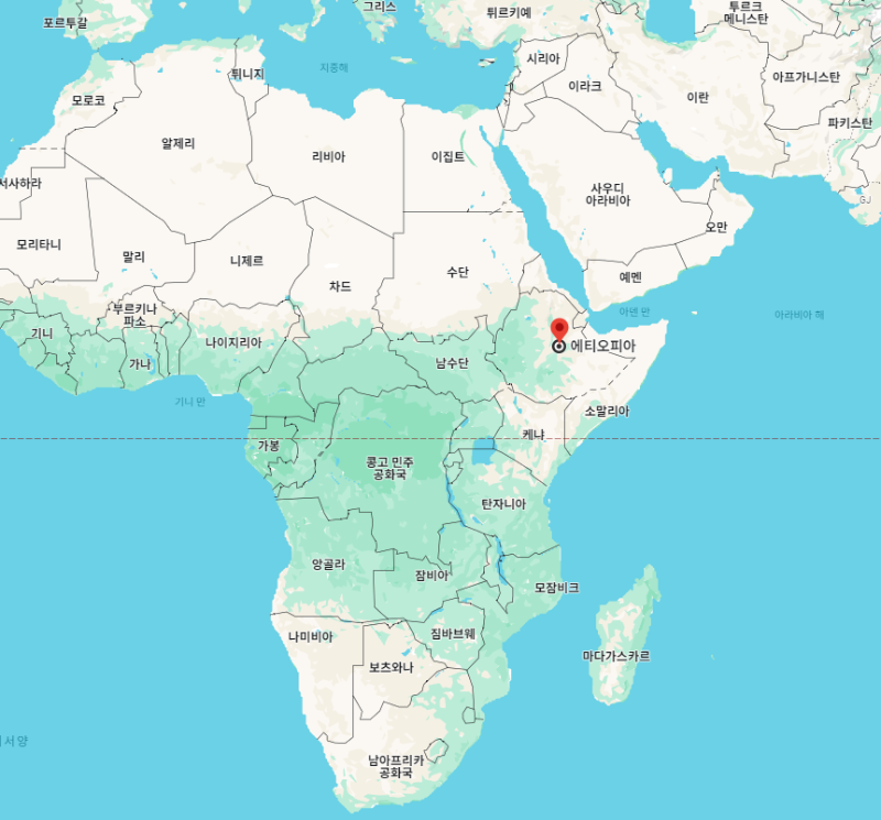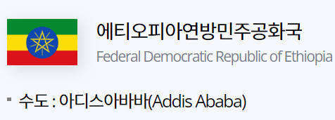 에티오피아"Ethiopia"는 아프리카 대륙의 북동부에 위치하고 있는 국가로 공식 국명은 에티오피아연방민주공화국"Federal Democratic Republic of Ethiopia"입니다.