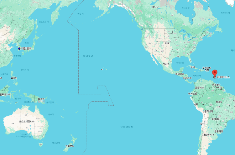 대한민국 기준으로 바베이도스 수도 "브리지타운"까지의 거리는 약 14,502km이며 시차는 바베이도스가 13시간 느립니다.