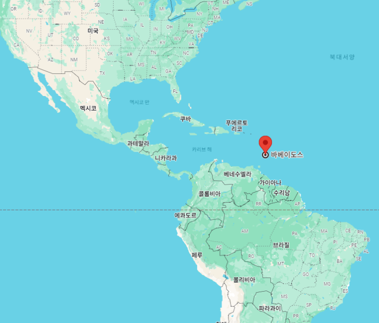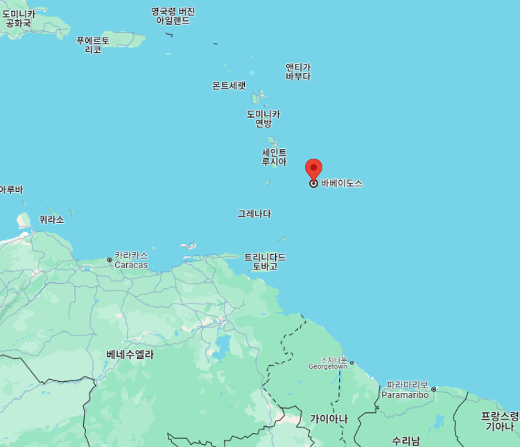 바베이도스"Barbados"는 중앙아메리카 카리브해에 위치하고 있는 섬나라로 수도는 브리지타운"Bridgetown"입니다.