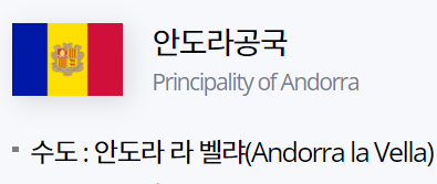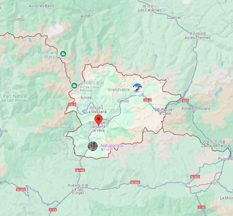 안도라"Andorra"는 유럽 대륙의 서남부 이베리아반도에 스페인과 프랑스 국경 사이에 위치하고 있는 국가로 공식 국명은 안도라공국"Principality of Andorra"입니다.