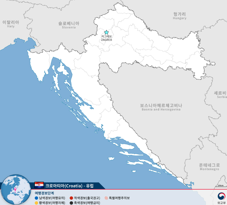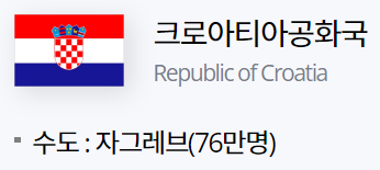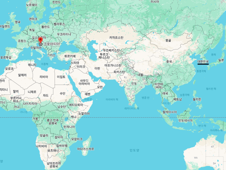 대한민국 기준으로 크로아티아 수도 "자그레브"까지의 거리는 약 8,745km, 시차는 크로아티아가 7시간 느립니다.