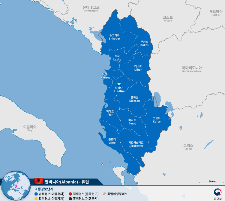 대한민국과 알바니아는 1991년 외교관계를 수립했는데 현지 대사관은 없고 그리스한국대사관이 겸임하고 있습니다.