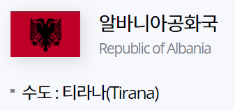 "알바니아"는 유럽 대륙의 동남부 발칸반도 서북부에 위치하고 있는 국가로 공식 국명은 알바니아공화국"Republic of Albania"입니다.
