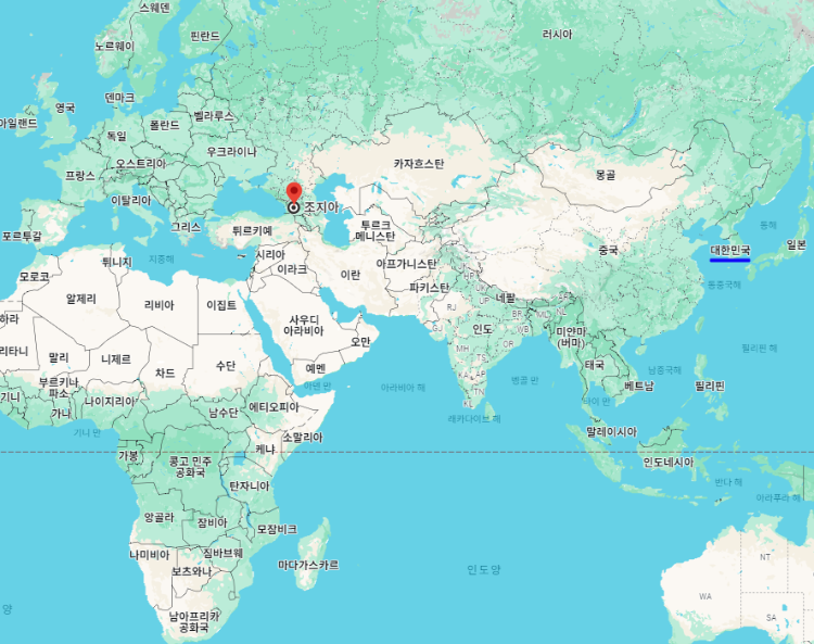 대한민국 기준으로 조지아 수도 "트빌리시"까지의 거리는 6,928km, 시차는 조지아가 5시간 느립니다.