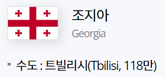 조지아"Georgia"는 유럽과 아시아 경계에 위치하고 있는 흑해 연안에 위치하고 있는 국가로 수도는 트빌리시"Tbilisi"입니다.