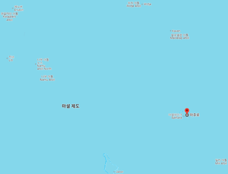 대한민국 기준으로 마셜제도 수도 "마주로"까지의 거리는 약 5,452km, 시차는 마셜제도가 3시간 빠릅니다.