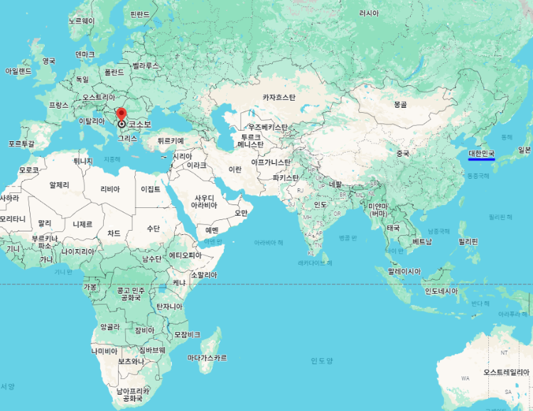 대한민국 기준으로 코소보 수도 "프리슈티나"까지의 거리는 약 8,541km, 시차는 코소보가 7시간 느립니다.