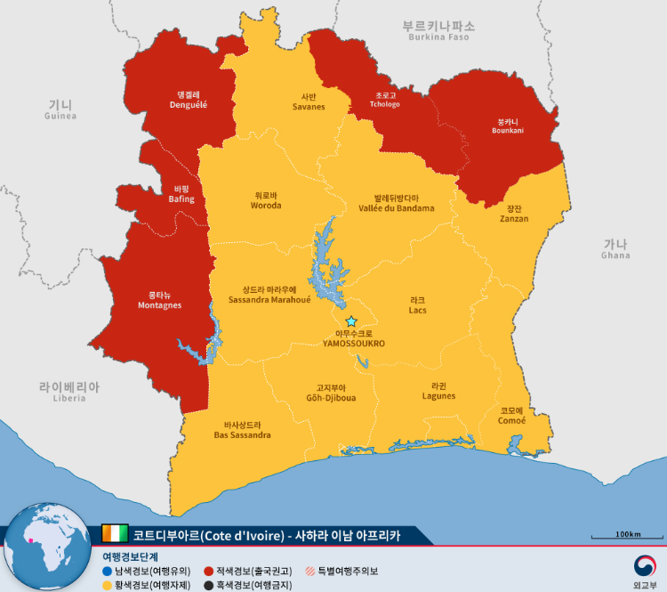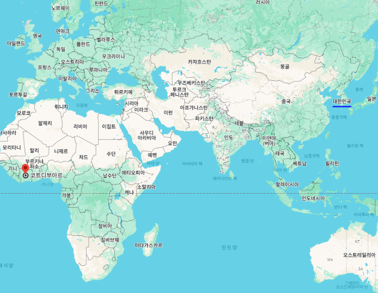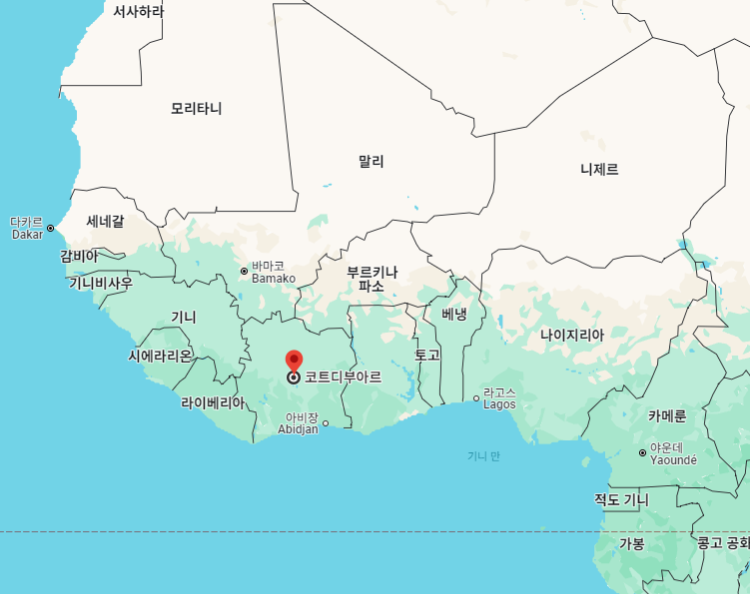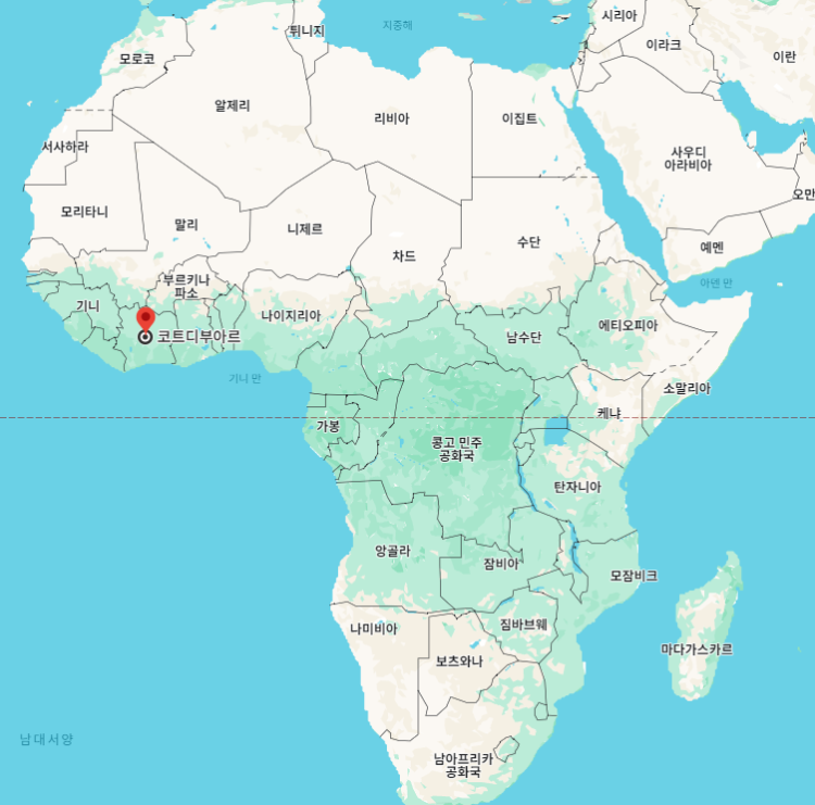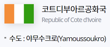 "코트디부아르" 아프리카 대륙의 서부에 위치하고 있는 국가로, 공식 국명은 코트디부아르공화국"Republic of Cote d'Ivoire"입니다.