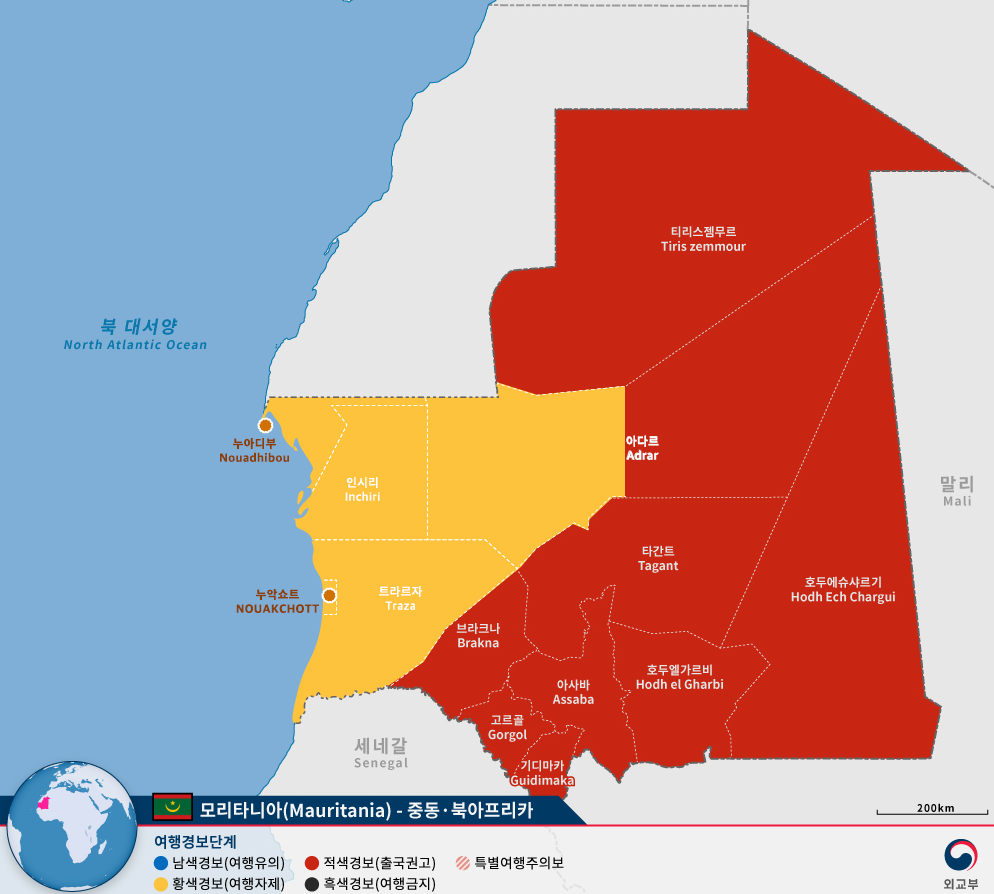 대한민국과 모리타니는 1963년에 외교관계를 수립했는데 1964년 북한과의 수교때문에 단교했다가 1978년 다시 재수교했습니다.
