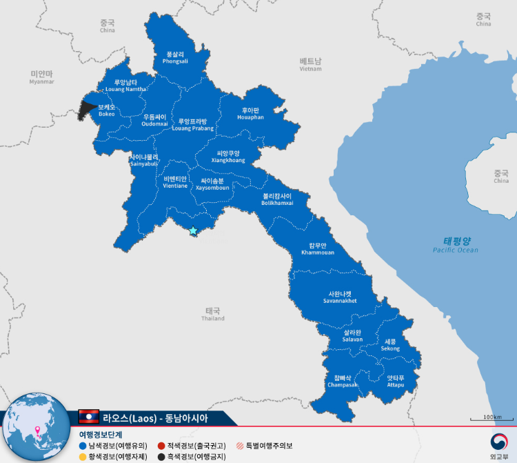 라오스"Laos""는 동남아시아 인도차이나반도 중앙에 위치하고 있는 내륙국으로, 공식 국명은 라오인민민주공화국"Lao People's Democratic Republic"입니다.