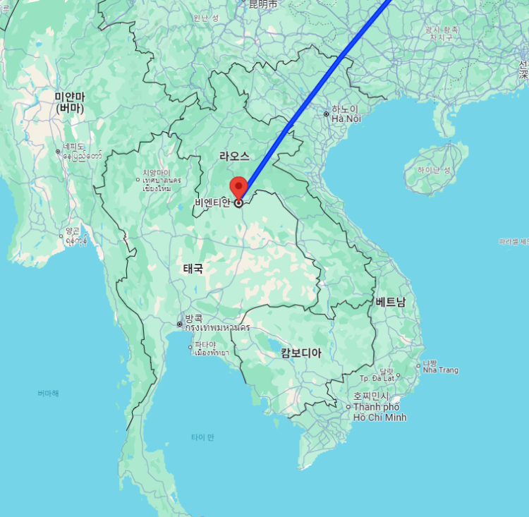 대한민국 기준으로 라오스 수도 "비엔티안"까지의 거리는 약 3,172km이며, 시차는 라오스가 2시간 느립니다.