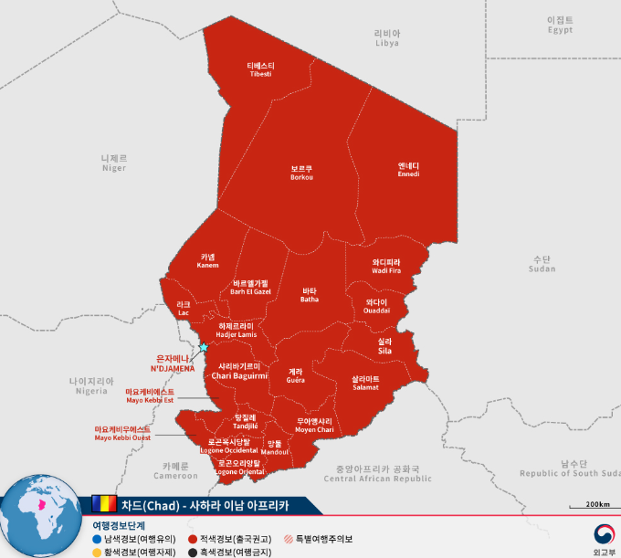대한민국과 차드는 1961년 외교관계를 수립했는데 현지 대사관은 없고 카메룬 한국대사관이 겸임하고 있습니다.
