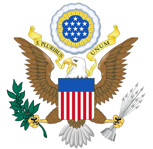 * 미국 국장의 앞면 모습의 희머리수리는 미국의 국조이며, 또한 성좌 13개와, 올리브 나뭇가지의 잎 13개, 화살 13개 등은 식민지로 구성된 주권국가를 상징합니다.
