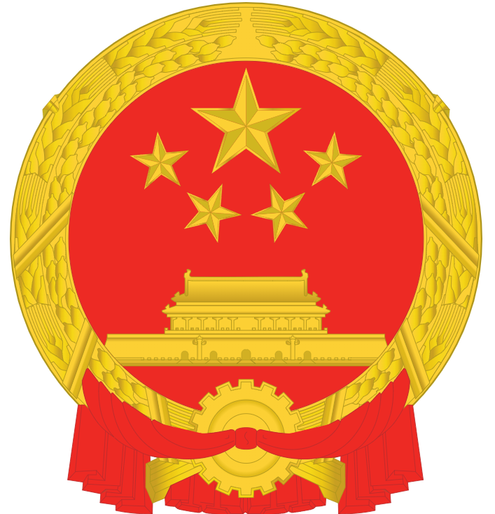 중국 국장의 별은 국기의 의미와 같고, 중간에는 "천안문", 둘레에는 "벼"와 "톱니바퀴"가 있는데 각각 농업과 공업을 의미합니다.