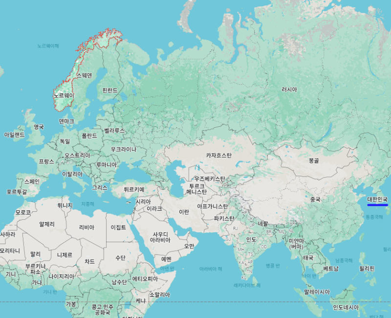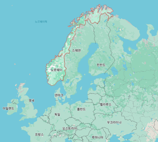 노르웨이"Norway"는 유럽 북부에 위치한 국가로 면적은 약 32만㎢(한반도의 1.5배), 수도는 오슬로"Oslo"입니다.*스발바르제도 별도