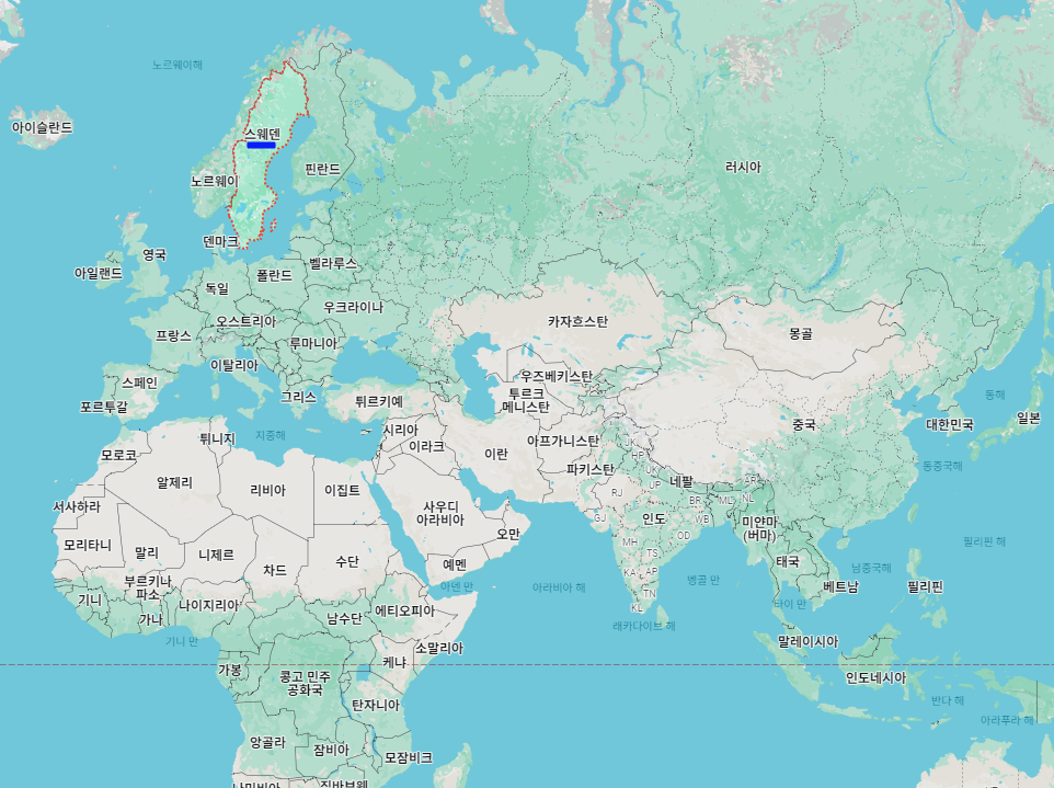 스웨덴"Sweden"은 북유럽에 위치하고 있는 국가로, 면적은 약 44만 9964㎢(한반도의 2배), 수도는 스톡홀름"Stockholm"입니다.