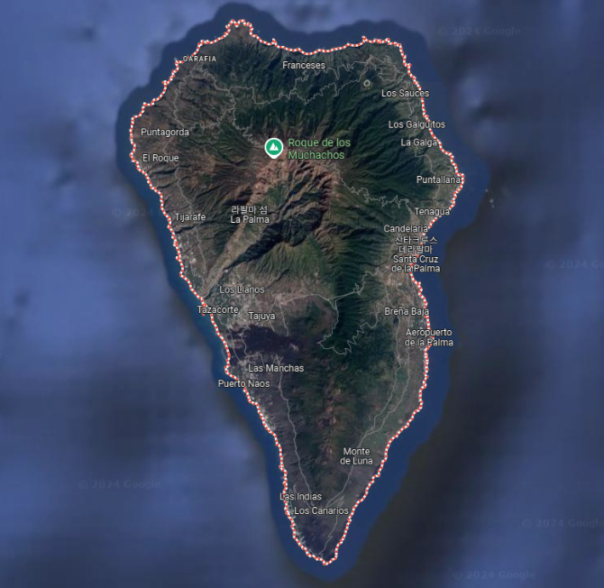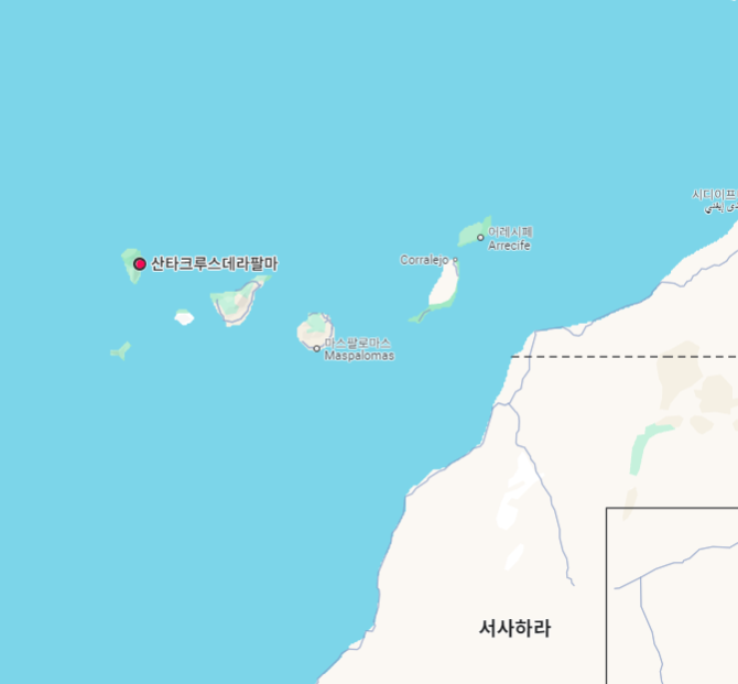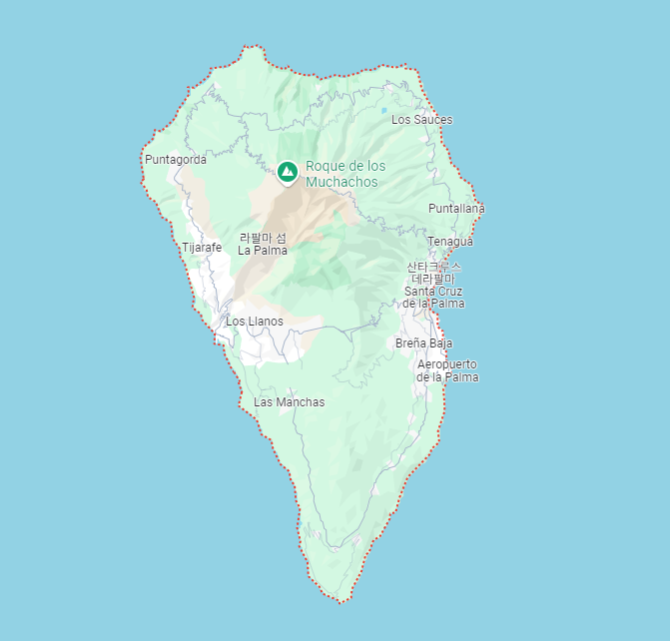 라팔마섬"La Palma"은 스페인 본토에서 약 1,370km 떨어진 곳에 위치하고 있는 섬나라로 카나리아 제도에 포함되어 있습니다.