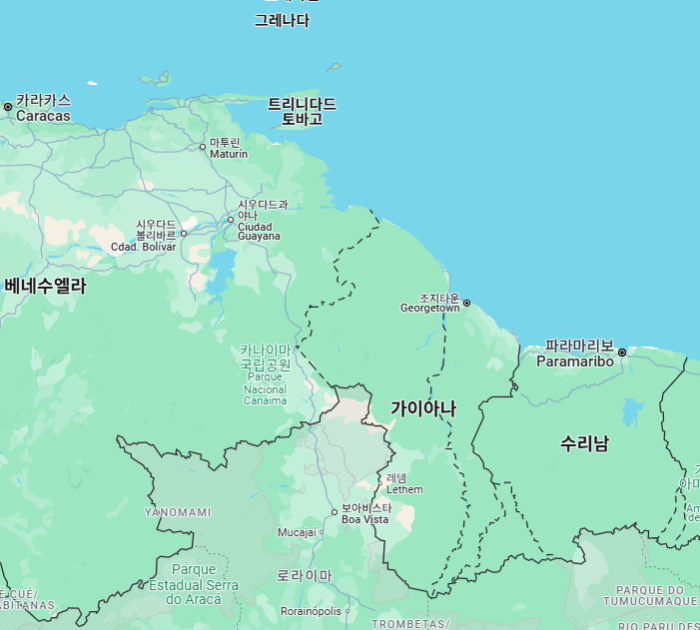 가이아나"Guyana"는 남아메리카 동북단에 위치하고 있는 국가로, 수도는 조지타운'Georgetown'입니다.
